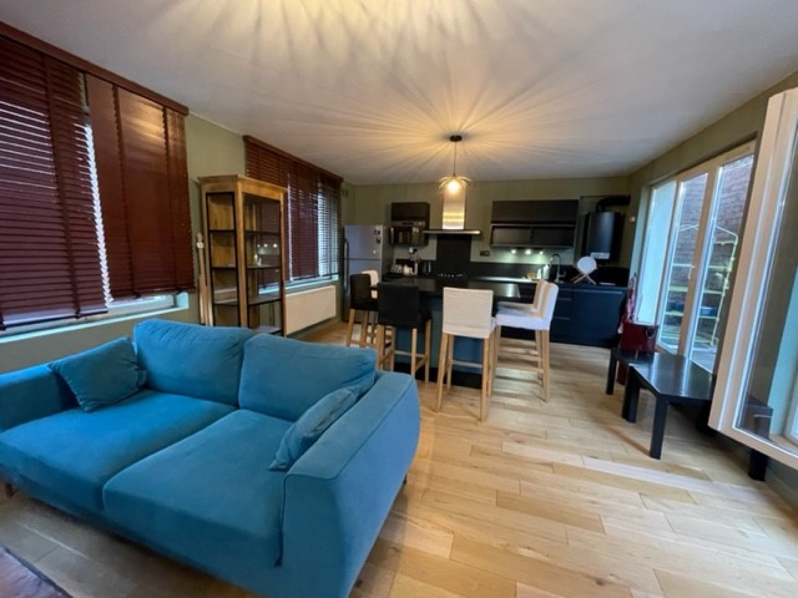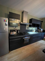 a l'étage beau séjour avec cuisine entièrement meublée et donnant sur terrasse.